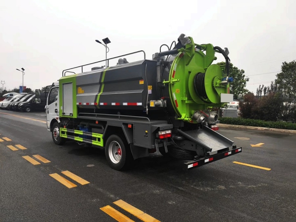 上裝配置:罐體兩邊水箱共3立方米,中間吸污7立方米,高壓部分采用德國品孚215L/min22MPa高壓泵,氣推水,10個組合噴頭,60米高壓管,吸污部分采用水循環泵,吸污罐帶舉升,后液壓開啟,罐體后蓋尾部一個進污口球閥,和一個排污口球閥,8米吸污管一根,一套陰陽端,壓力表,視糞管,防溢閥。